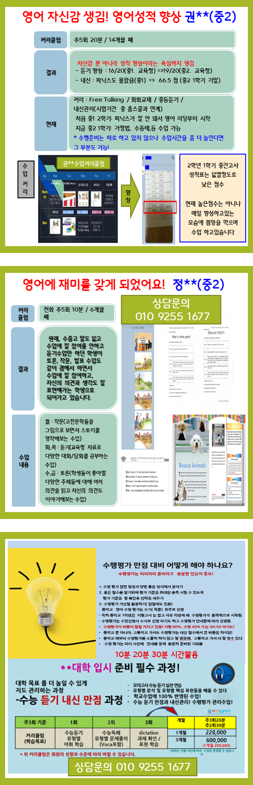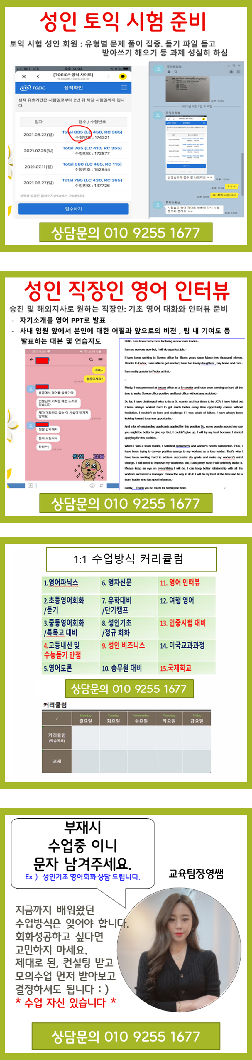 | 안양 왕초보 영어회화 호계동 아이엘츠 토익 스피킹 오픽 영어과외 직장인 주부 비즈니스 영어스피킹 (1) | 2023.10.29 |